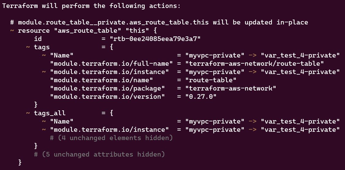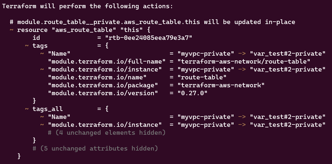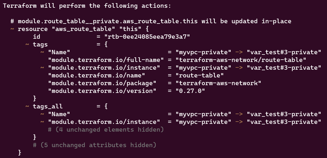 - "myvpc" 라는 이름의 vpc를 생성하고, 서브넷 모듈의 메타변수에 ${module.vpc.name} 형태로 불러와서 서브넷 이름을 구성한다.