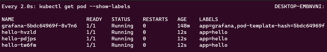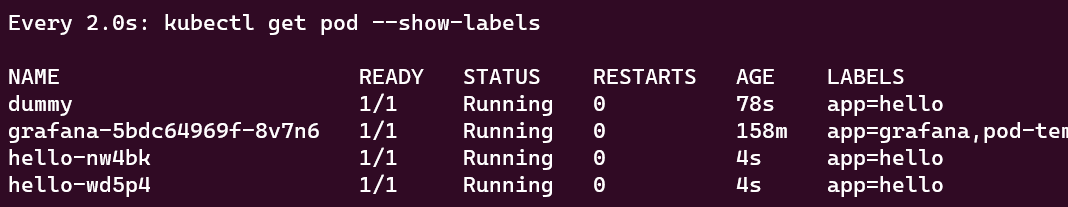 - 이후 아까의 ReplicaSet yaml 파일을 apply 하면 Label가 "app=hello"인 Pod가 이미 1개 있기 때문에, 2개만 더 생성된다.