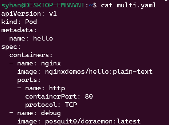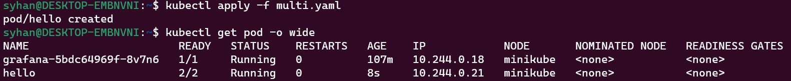 - 2개의 컨테이너로 구성된 Pod 정의파일을 적용