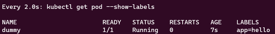 - Pod yaml 파일로 Labels가 "app=hello" 인 Pod를 생성한다.