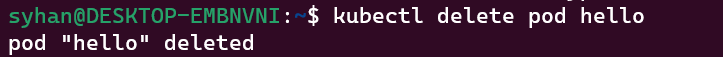 - 생성한 "hello" Pod를 삭제하는 명령어