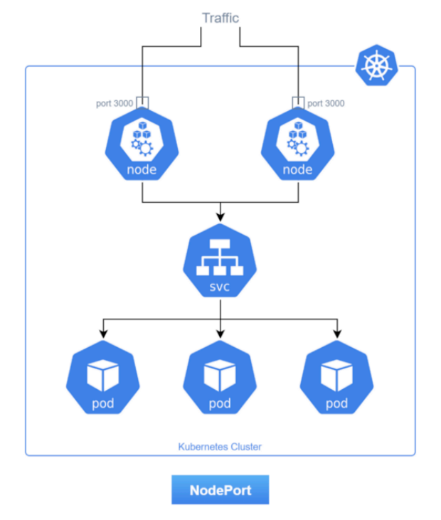 - 모든 쿠버네티스 노드의 동일 포트를 오픈하여 외부에서 서비스에 접근하는 방식