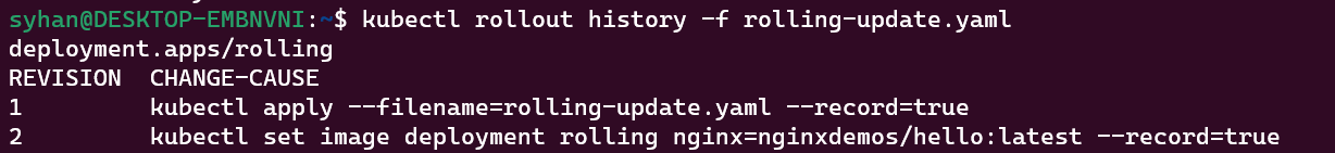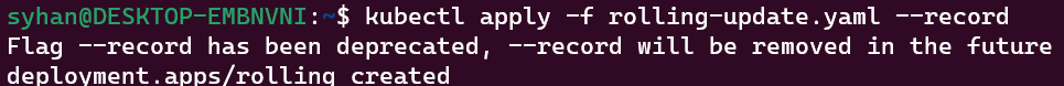 - 배포전략을 설정한 yaml 파일을 apply하며, --record 옵션을 추가하면 이 후 history 확인 가능