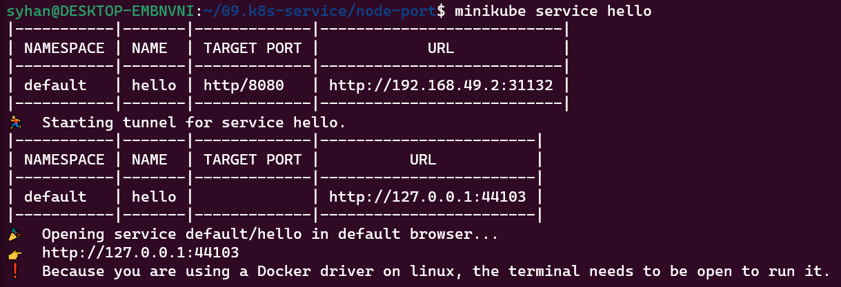 - 생성된 서비스 항목을 확인한다. "targetPort/NodePort"를 확인할 수 있다.