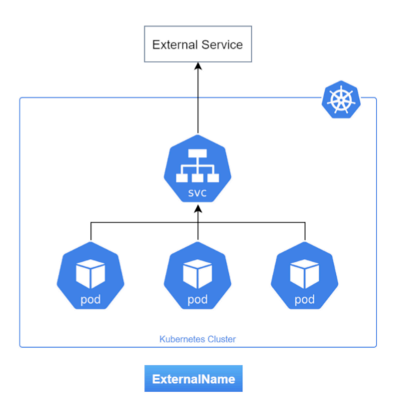- 서비스가 Pod를 가리키는 것이 아닌 외부 도메인을 가리키도록 구성하는 타입이다.
