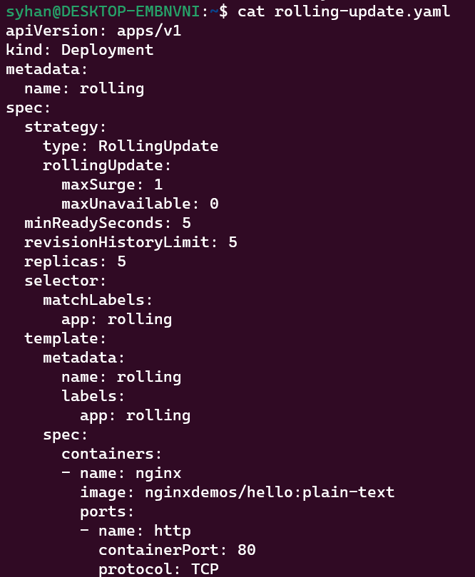 - "spec" 속성 하위에 "strategy" 속성이 추가된 것을 확인 (해당 속성이 Deployment 배포 전략을 정의한다.)