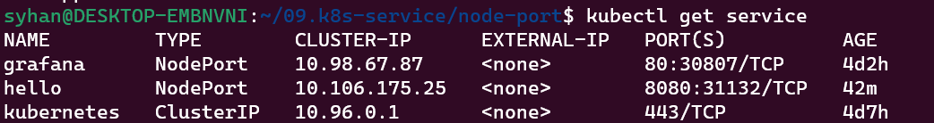 - NordPort 타입은 기존 Cluster IP 타입에서 "spec.ports.nodeport" 값이 추가된다. 미 지정시 랜덤 포트 지정
