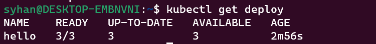 - ReplicaSet 과 비슷한 듯 보이나 kubectl get deploy하여 Deployment 생성 된 것 확인