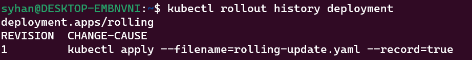 - deployment의 revision을 "1"로 되돌리는 명령어이다.