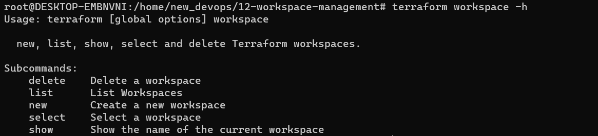 - "new" 옵션으로 새로운 워크스페이스(prod)를 생성해보자.