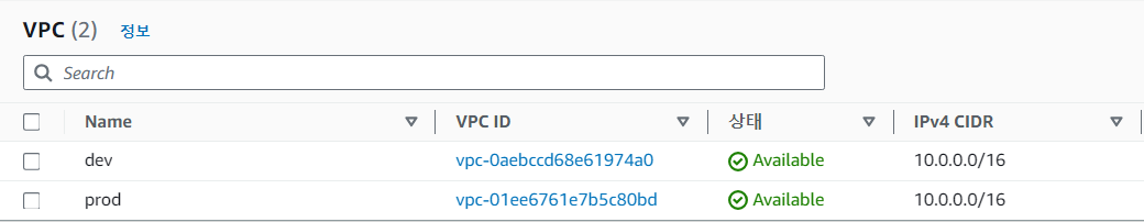 - prod 환경에 맞는 tfvars 파일을 사용하여 prod 워크스페이스에서 코드를 실행하여 vpc를 생성한다.